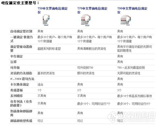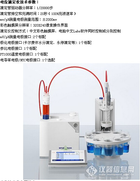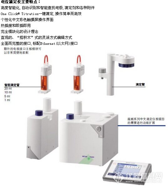特勒-托利多超越系列中文电位滴定仪是操作简单、分析高效和安全可靠滴定解决方案的一个崭新里程碑。超越系列滴定仪,有着优良的性价比和高度自动化的特点。根据型号不同,可同时连接多个滴定管和传感器,进行自动多步滴定、返滴定等各种复杂滴定测试。选用不同电极还可进行各种类型的滴定,例如:酸碱滴定、络合滴定、非水滴定、氧化还原滴定,甚至卡尔费休水分测定、气体水分测定等。T50是超越系列的标准型号,它不仅仅是一台操作简便的滴定仪。